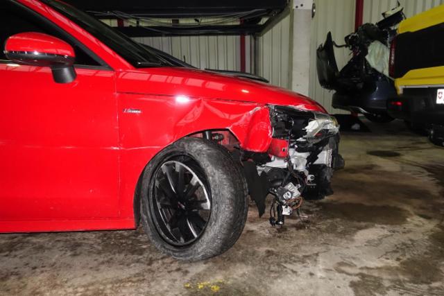 Aufhängungsteile vorne rechts beschädigt. Risiko Lenkung. Motoraufhängung/Aggregateträger ist beschädigt.