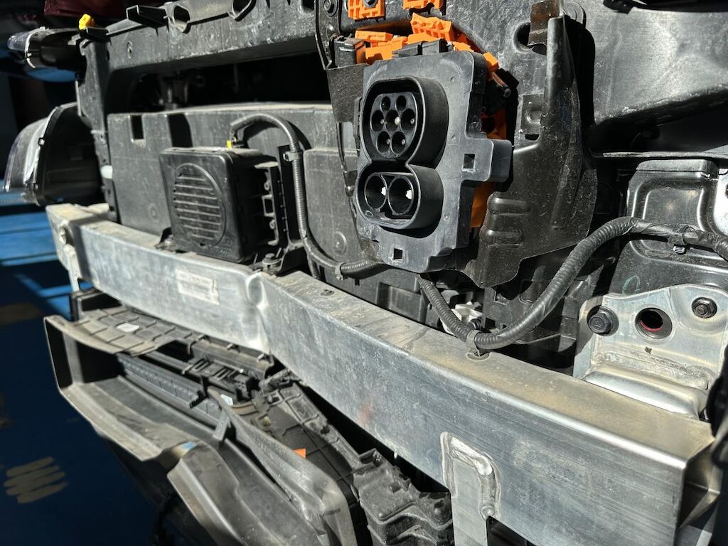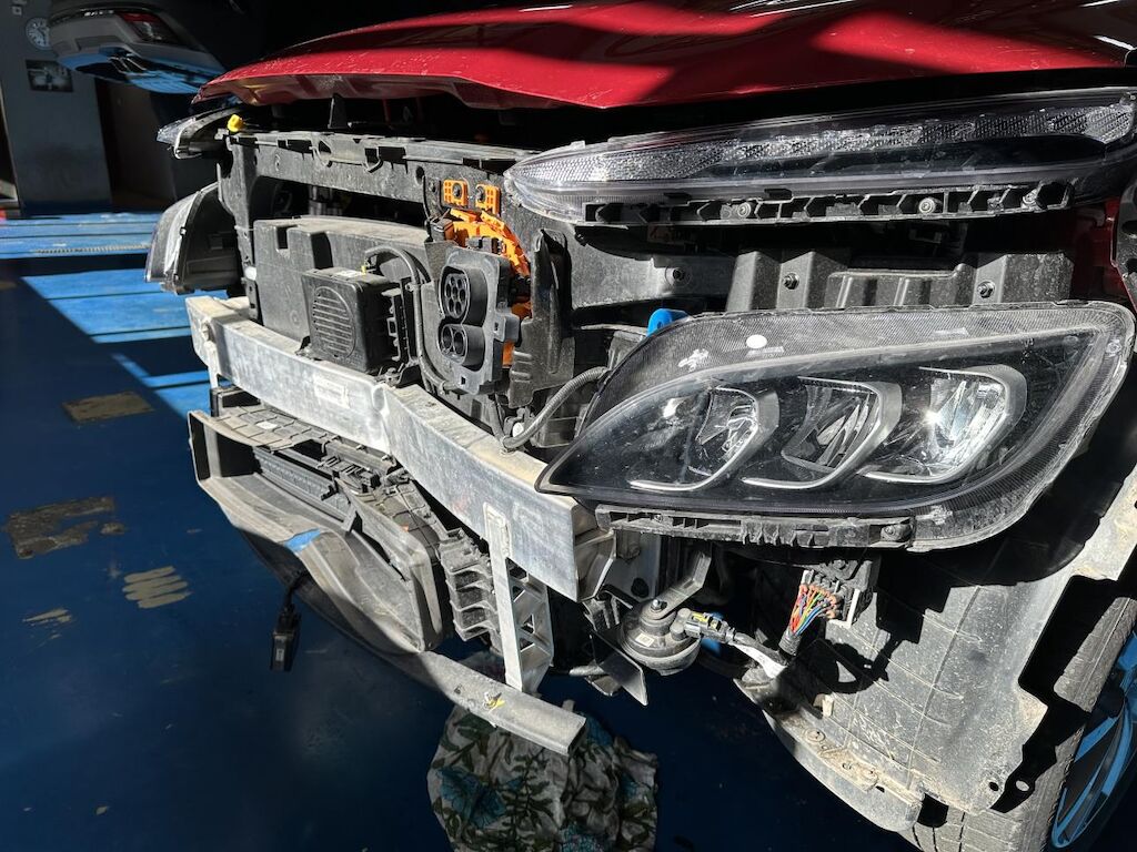 Anprall Front. Dabei wurde die Stossstange vorne mit Anbauteile, der Scheinwerfer links, der Querträger, die Frontmaske, sämtliche Kühler, der Lüfter mit der Halterung und die Ladesteckdose beschädigt. Das Fahrzeug hat diverse Gebrauchsspuren (Dellen und Lackschäden). Motor Getriebe Vorderachse Hinterachse Airbags ausgelöst: 0 unbekannt ( Abfallcode 16.01.04ak )