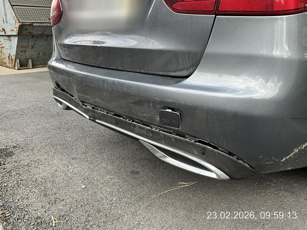 Beschreibung der Schäden: Frontschaden; Stossstange mit Anbauteilen eingedrückt und gerissen; Kotlfügel vl und vr eingedückt; diverse Halter von den Scheinwerfern abgebrochen; Scheinwerfer vl und vr zerkratzt; Kühlergrill eingedrückt/zerschlagen; Frontträger eingedrückt; Klimakondensator eingedrückt Heckschaden; Stossstangen-Obertile mit Anbauteilen eingedrückt und gerissen; Stossstangenunterteil gerissen; Heckklappe zerkratzt und leicht eingedrückt; Heckleuchte hl gerissen; Elek. AHK defekt (funktioniert nicht mehr); Parksensoren defekt; Kabelstrang von StSt h defekt.