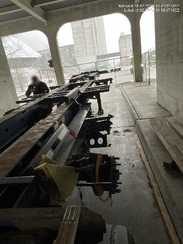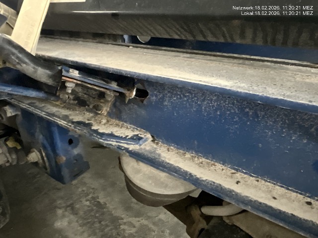 Beim Abbiegen mit Mauer kollidiert und die erste von drei Achsen ausgerissen / Vorbestandene Schäden: Gebrauchsspuren