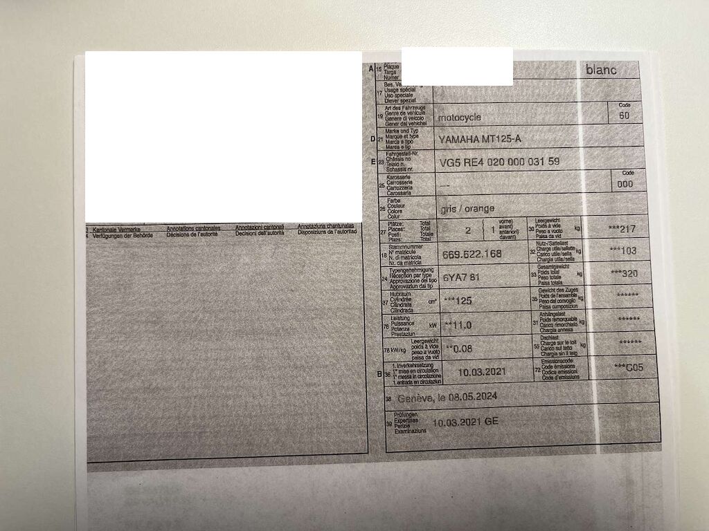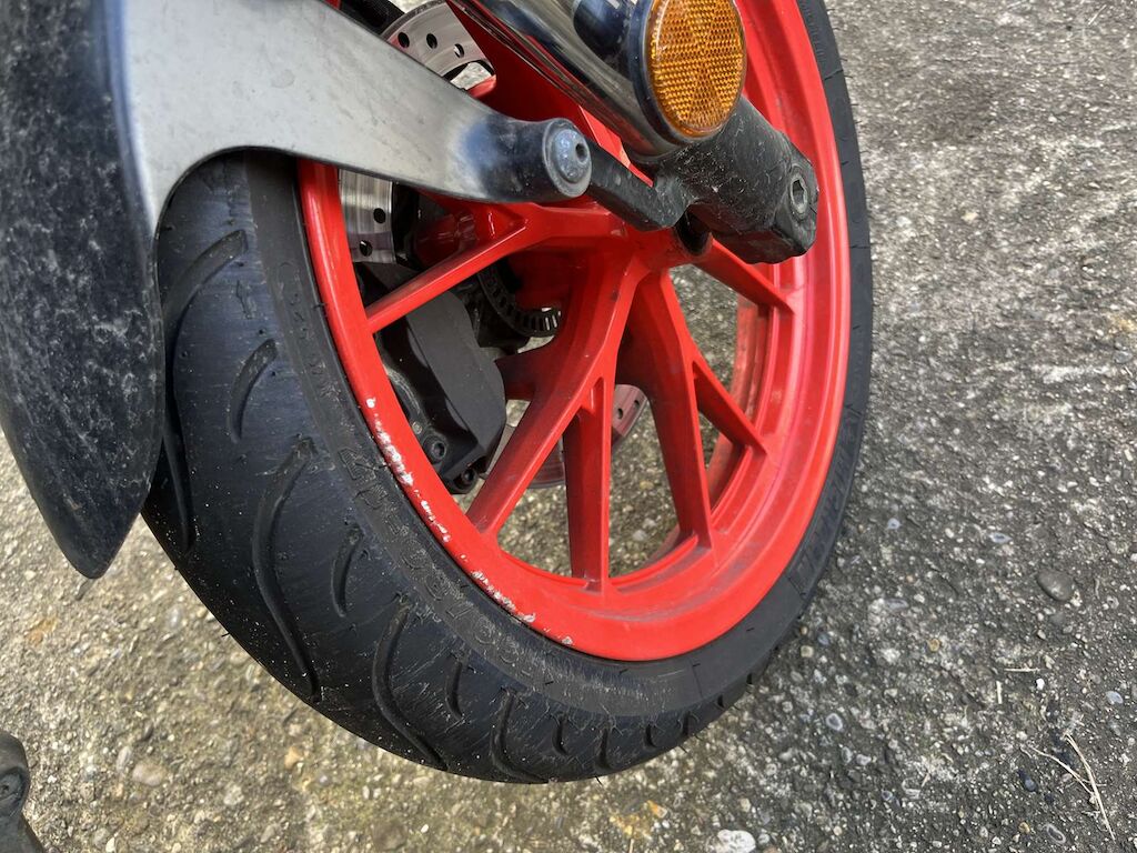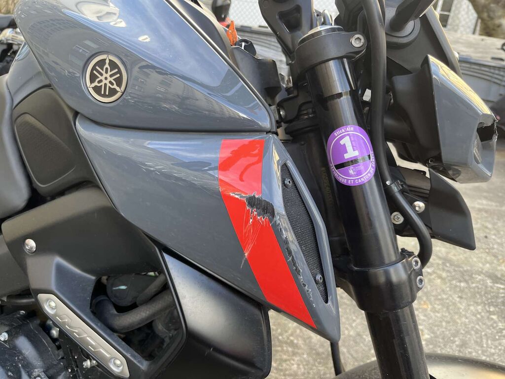 Chute côté droit: Levier de frein, câble de gaz, embout de guidon, rétroviseur droit, face avant, phare, pied de fourche, roue avant, carénage avant droit, entourage réservoir, crash pad, repose pied, levier de frein arrière, échappement, carénage arrière endommagés et râpés. Buté de cadre endommagée. Motor Getriebe Vorderachse Hinterachse Airbags ausgelöst: 0 Ja ( Abfallcode 16.01.04ak )