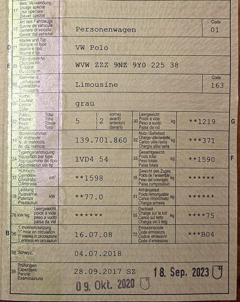 Motor verliert Kühlflüssigkeit (event. Wasserpumpe), Scheinwerfe rechts hat Wassereintritt, Karosserie hinten rechts Kratzer (siehe Fotos) Auto ist problemlos fahrbar. Es besteht aber keine technische Prüfung von uns.