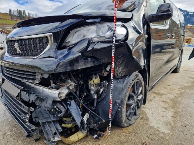 Front links eingedrückt. Kotflügel vorne links eingedrückt. Motorhaube eingedrückt. Frontblech/Maskenblech eingedrückt. Radhaus vorne links eingedrückt / gestaucht. Längsträger vorne links gestaucht. Fahrzeugvorbau nach rechts verschoben.