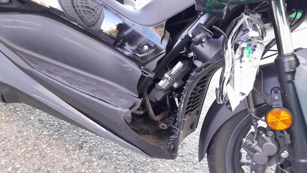 Fourches + garde-boue Face AV complète + support et phare Carénages AV + latéraux D Tablier AV Marche pieds D et bas de caisse Levier de frein D + rétroviseur Tôle par-chaleur échappement ( + autre dommage ) Carénages lat G + bas de caisse Levier de frein G + rétroviseur Béquilles Aile AR G + poignée Motor Getriebe Vorderachse Hinterachse Airbags ausgelöst: 0 unbekannt ( Abfallcode 16.01.04ak )