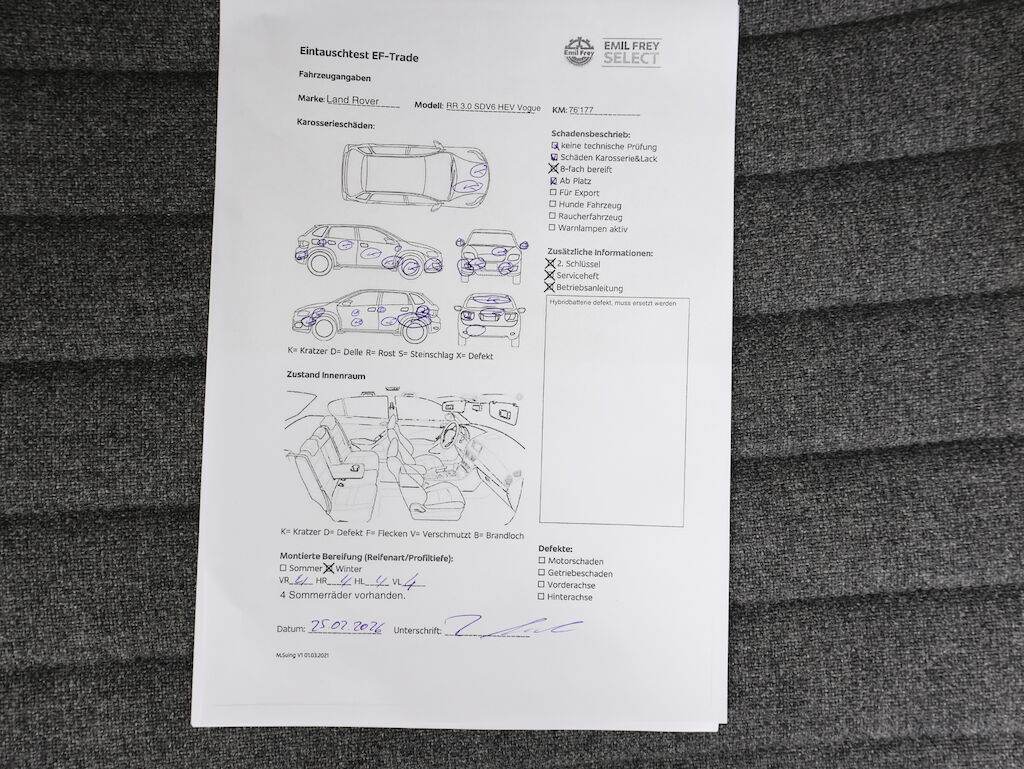 Keine technische Prüfung (Werkstatttest) vorgenommen Diverse Schäden an Karosserie/Lack. 8-fach bereift. Zustand Sommerräder ? Fahrzeug ab Platz, ohne Garantie und Aufbereitung. DPF/FAP Filter nicht kontrolliert Es leuchten Warnlampen während des Betriebs. Hybridbatterie ist defekt. Fahrzeug kann nicht gefahren werden! Motor Läuft für auf Transporter. Motor Getriebe Vorderachse Hinterachse Airbags ausgelöst: 0 unbekannt ( Abfallcode 16.01.04ak )
