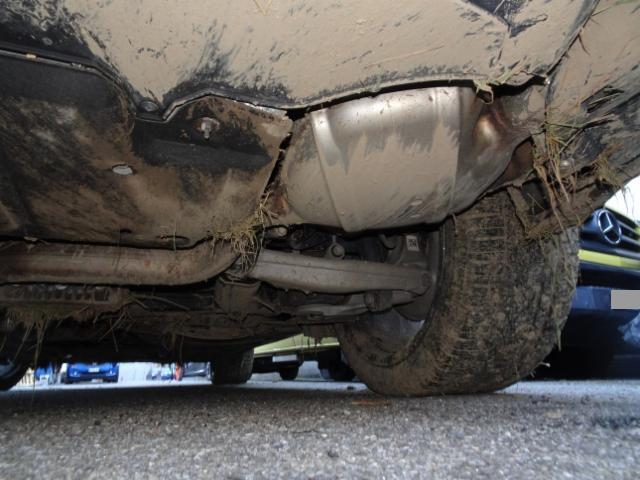 Vorderachse ist beschädigt. Aufhängungsteile vorne links beschädigt. Risiko Hinterachse. Lenkgetriebe ist beschädigt. Motoraufhängung/Aggregateträger ist beschädigt.