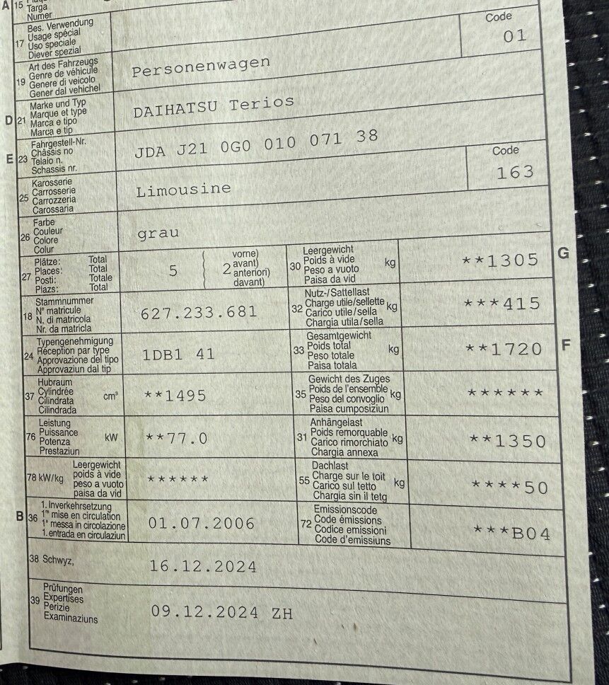 - Risiko Vorderachse (Rad vorne rechts, Geräuschbildung beim fahren)- Risiko Motor (Fehlermeldungen beachten!)- diverse teils grössere Carrosserieschäden- Innenraum sehr ungepflegt! Starke Geruchsbildung und Verschmutzung- Diverse teils stark rostige Stellen!- Riss an Frontscheibe- Ein Schlüssel vorhanden
