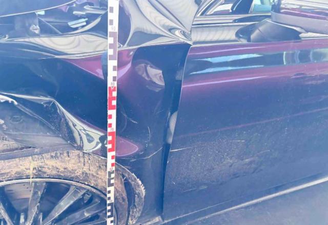Linke Seite beschädigt. Tür vorne links ist eingedrückt.