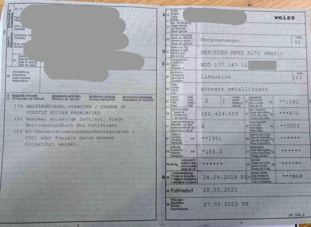 Fahrzeugdokumente vorhanden.