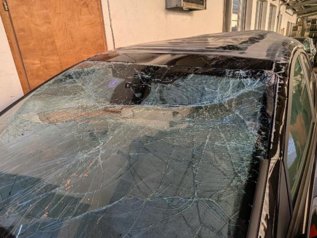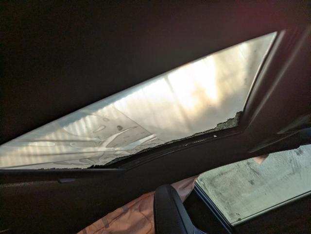 Windschutzscheibe ist gerissen. Glasdach beschädigt.
