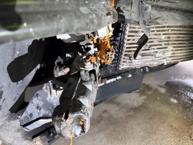 Kühler ist eingedrückt. Klimakondensator ist eingedrückt. Ladeluftkühler eingedrückt. Alle Kühler vorne sind eingedrückt.