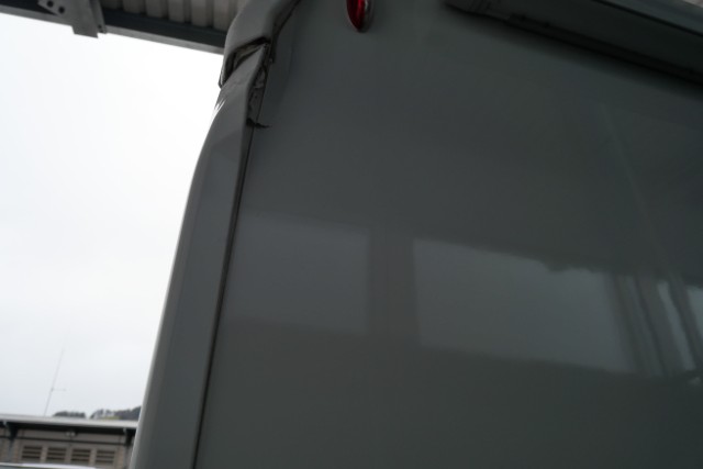 Seite rechts eingedrückt. Seite rechts hat ein Loch. Heck eingedrückt. Heck hat ein Loch.