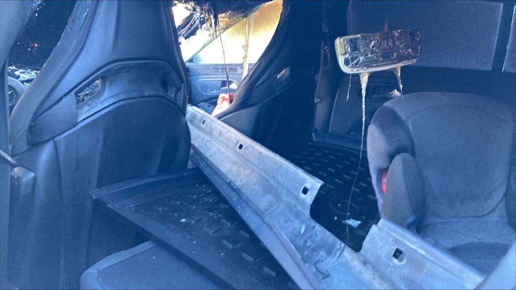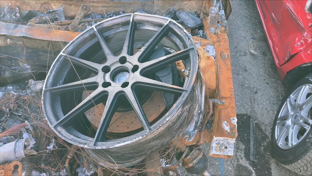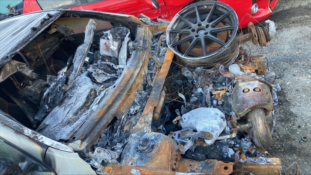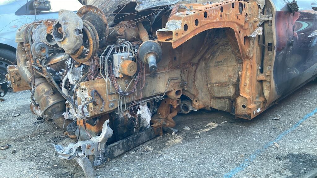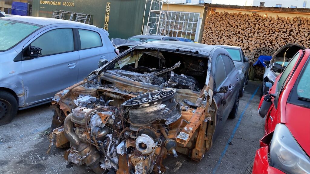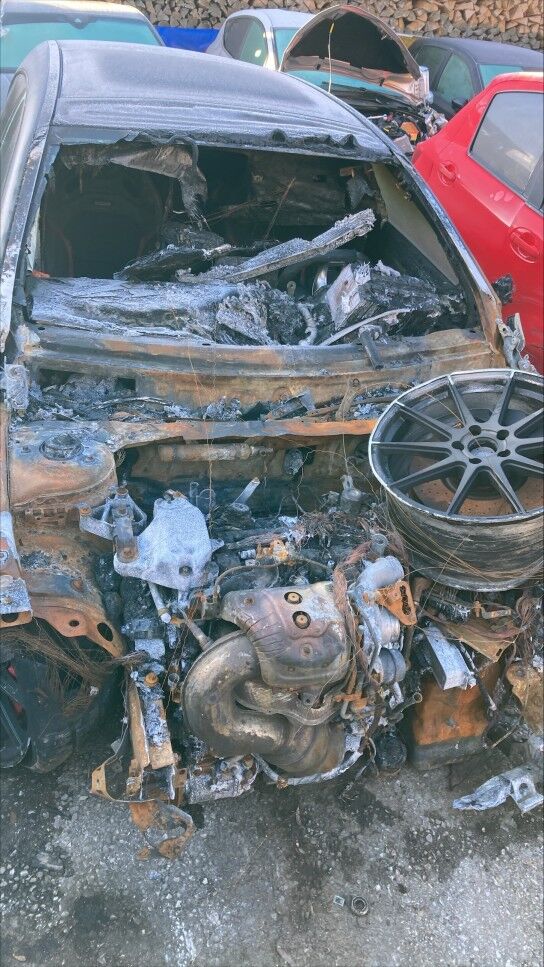 Zone avant: face avant, compartiment moteur, deux ailes, par brise, avant du toit, tableau de bord, intérieur complétement brûlés. La partie la plus chaude du sinistre se situe sur zone avant gauche du moteur, point de départ. Kilométrage pas lisible. Motor Getriebe Vorderachse Hinterachse Airbags ausgelöst: 0 Nein ( Abfallcode 16.01.04ak )