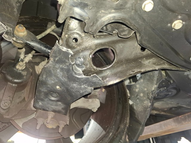 Vorderachse ist beschädigt. Risiko Lenkung. Motoraufhängung/Aggregateträger ist beschädigt.