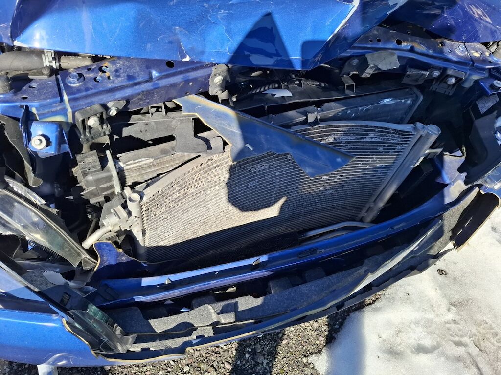 Dommage partie frontale: bloc avant fortement plié déformé embouti enfoncé disloqué endommagé, capot charnières et serrure de capot moteur aile droite tôle frontale renfort de pare chocs fortement pliés déformés emboutis enfoncés endommagés, phares gauche et droit enveloppe supports garniture et grilles de pare chocs calandre convoyeurs d'air et ventilateur de refroidissement cassés fissurés éclatés arrachés endommagés, condenseur de climatisation intercooler radiateur de refroidissement percés déformés endommagés. Motor Getriebe Vorderachse Hinterachse Airbags ausgelöst: 0 Nein ( Abfallcode 16.01.04ak )