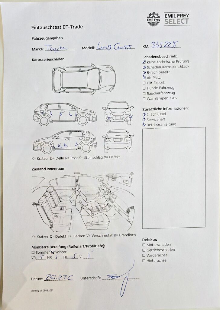 Keine technische Prüfung (Werkstatttest) vorgenommen Diverse Schäden an Karosserie/Lack. 8-fach bereift. Fahrzeug ab Platz, ohne Garantie und Aufbereitung. Motor Getriebe Vorderachse Hinterachse Airbags ausgelöst: 0 unbekannt ( Abfallcode 16.01.04ak )