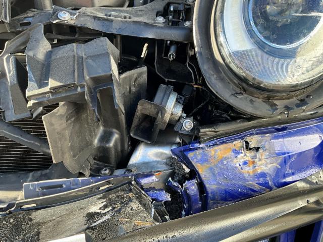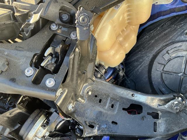 Front eingedrückt. Längsträger vorne rechts und links gestaucht. Fahrzeugvorbau nach rechts verschoben.