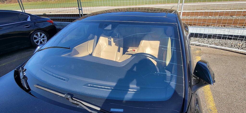 Kunstoffanbauteile Front und links versengt, Luftfahrwerk vorne beschädigt, Frontscheibe gerissen. Hochvoltbatterie beschädigt (Vorschaden). Motor Getriebe Vorderachse Hinterachse Airbags ausgelöst: 0 unbekannt ( Abfallcode 16.01.04ak )