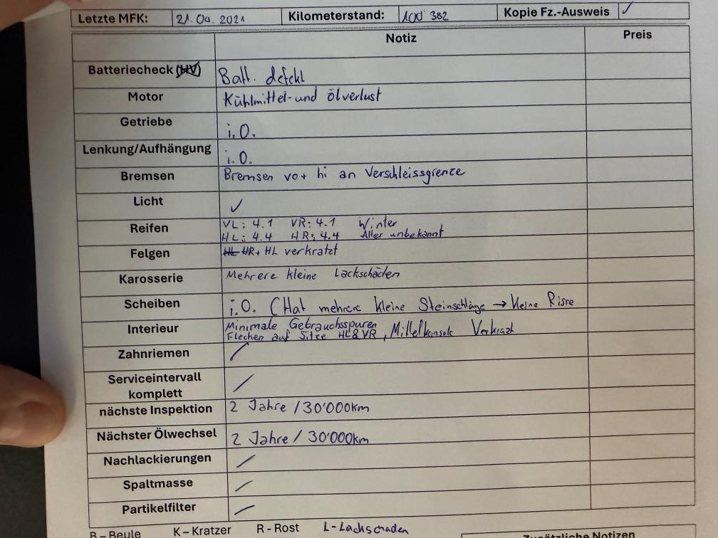 FHZ ist noch im Kundenbesitz Eine Fahrzeugbewertung wurde ausgeführt Siehe Fotos mit den Beanstandungen Felgen sind Verkratzt Service wurde frisch durchgeführt 1 Satz Felgen und 8 Reifen ( Reifen haben alle ca 4 mm Profil)