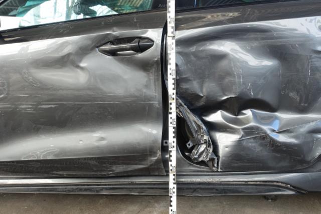 Linke Seite beschädigt. Anstoss links im Bereich der A-Säule. Anstoss links im Bereich der B-Säule. Anstoss links im Bereich der C-Säule. Schweller links ist eingedrückt. Tür vorne links ist eingedrückt. Tür hinten links ist eingedrückt.