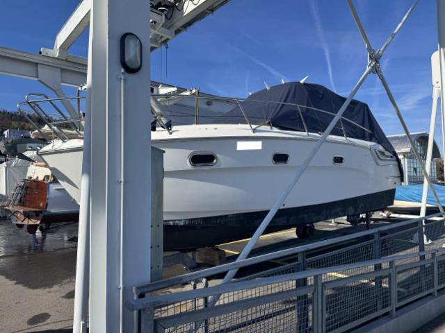 Wasser stand bis etwa unterkannte Motor - Wassereintritt durch beschädigte Manschette am Z-Antrieb - Manschette wurde durch Bootswerft erneuert - Boot liegt wieder im Wasser - Motor läuft gemäss Werft - Boot stand teilweise unter Wasser - weitere Beschädigungen möglich, Risiko - Transport vom Boot zu lasten vom Aufkäufer