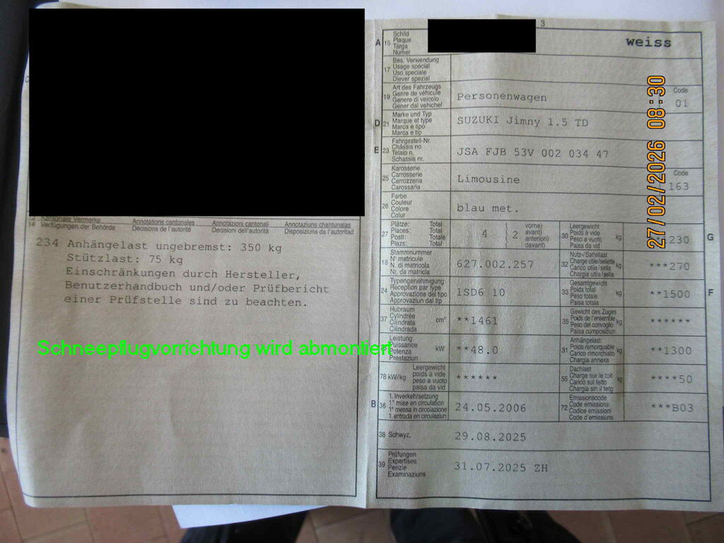 Gemäss Fotos. Wichtig: Notrad wird abmontiert. Schneepflugvorrichtung wird abmontiert.