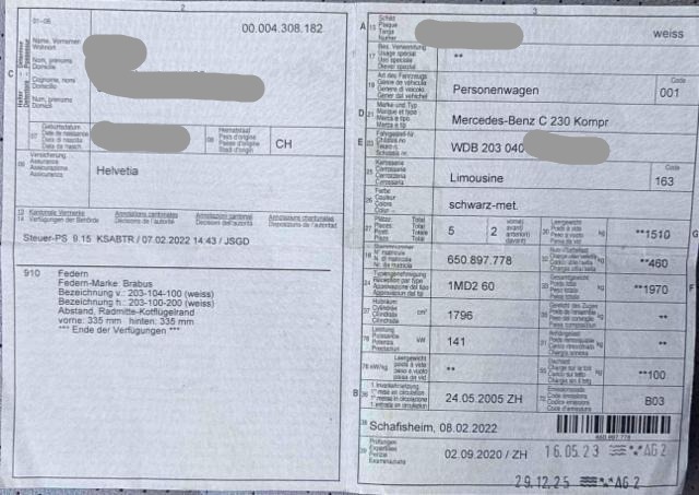 Fahrzeugdokumente vorhanden.