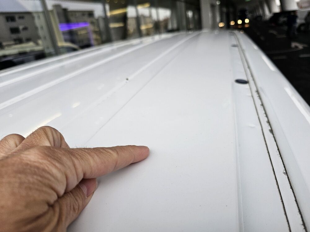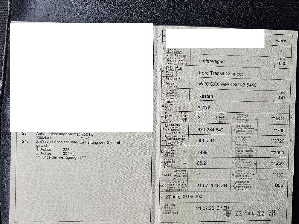 Dach 2-3 Dellen, Beifahrertüre Delle, Schiebetüre re. Kratzer, Stossfänger hi Spoiler Passung nicht i.O., Stossfänger hi. kratzer, Flügeltüre re. kl. Beule, Schiebetüre li. Delle, Stossfänger vorne Kratzer, Stoff Fahrersitz leicht gerissen.Keine technische Prüfung (Werkstatttest) vorgenommen Fahrzeug ab Platz, ohne Garantie und Aufbereitung. Motor Getriebe Vorderachse Hinterachse Airbags ausgelöst: 0 unbekannt ( Abfallcode 16.01.04ak )