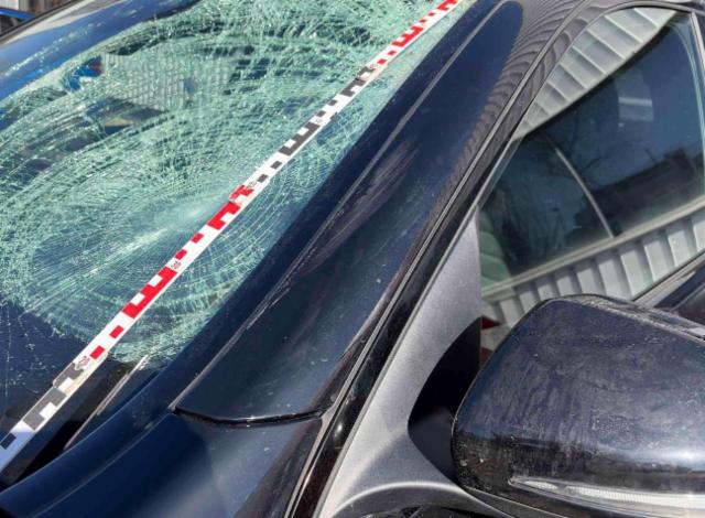 Windschutzscheibe ist gerissen. Glasdach beschädigt.