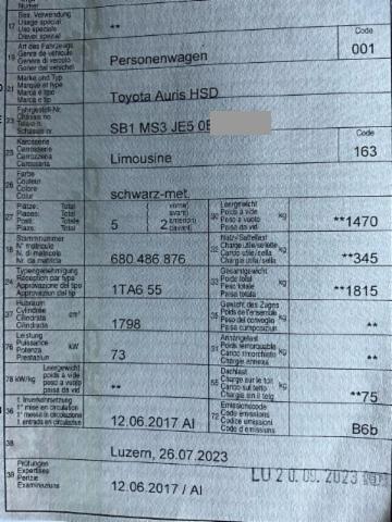 Klimaautomat Airbag Fahrer und Beifahrerseite Elektronische Wegfahrsperre Elektrische Fensterheber vorne + hinten Aussenspiegel elektrisch verstellbar und heizbar Seitenairbag Fahrer und Beifahrerseite Nebelscheinwerfer Zentralverriegelung mit Fernbedienung Lederlenkrad Mittelarmlehne hinten Lenkrad verstellbar Kopfairbag vorne und hinten Audiofernbedienung am Lenkrad Bodenteppiche Stabilitätskontrolle VSC + Traktionskontrolle TRC Leichtmetallräder 16" Rückfahrkamera Knieairbag Fahrer Isofix-Kindersitzbefestigung hinten Dämmerungs-Sensor Rücksitzlehnen getrennt abklappbar 60:40 Reifendruck-Überwachungsanzeige Anschluss USB und AUX Reifen-Reparatur Set LED Tagfahrlicht ABS und EBD Elektr. Bremskraftverteilung inkl. BA Multi-Informationsdisplay Start + Stopp Automatik Fahrer- und Beifahrersitz verstellbar Keine Gewähr auf die Angaben der Serienausstattungen Fernlichtassistent inkl. Spurwechselwarnung Toyota Touch 2/ CD/ MP3/ Bluetooth/ DAB+ Verkehrsschild-Erkennungssystem Pre Collision System Gratis-Service 6 Jahre/ 60'000 km