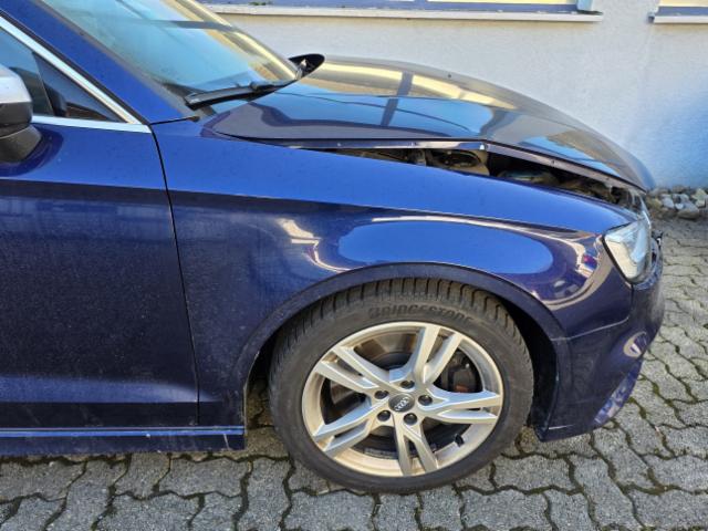 Linke Seite beschädigt. Anstoss links im Bereich der A-Säule. Tür vorne links ist eingedrückt.