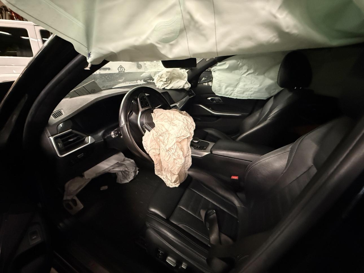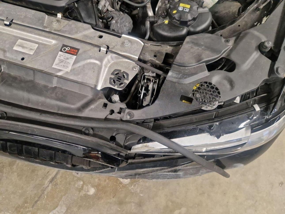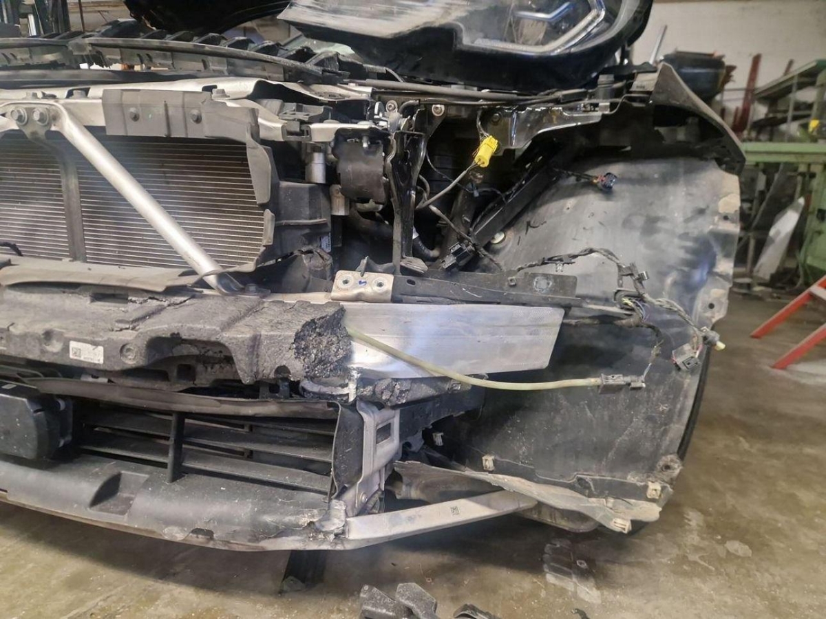 Airbag ausgelöst, Armaturenbrett, Front, Front rechts, Frontscheibe, Klimakühler, Kotflügel links, Kühler, Ladeluftkühler, Motorhaube, Scheinwerfer links, Stosstange vorne
