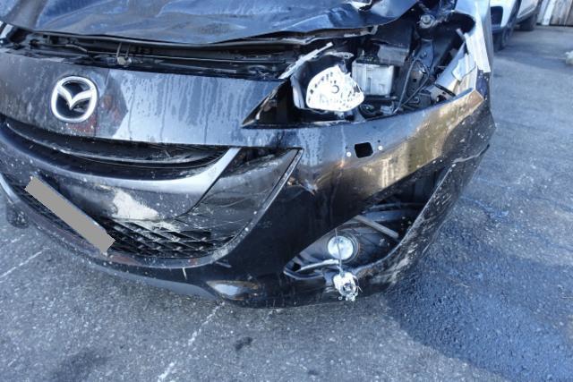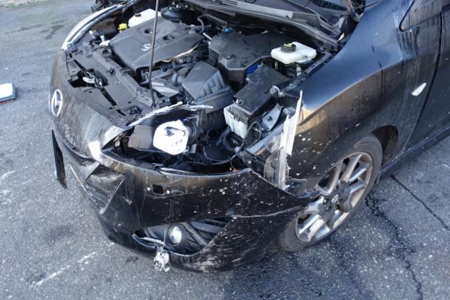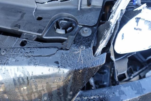 Kotflügel vorne rechts und links eingedrückt. Motorhaube eingedrückt. Frontblech/Maskenblech eingedrückt. Radhaus vorne links eingedrückt / gestaucht.