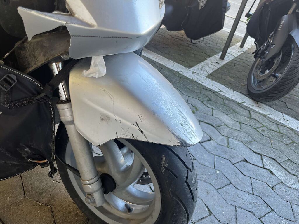 Chute côté droit: Carénage avant, phare avant, pare-boue, fourche avant, pare-brise, rétroviseur droit, levier de frein, poignée, top case, pare chaleur échappement, bas de caisse droit, repose pied endommagés et râpés. Motor Getriebe Vorderachse Hinterachse Airbags ausgelöst: 0 Ja ( Abfallcode 16.01.04ak )