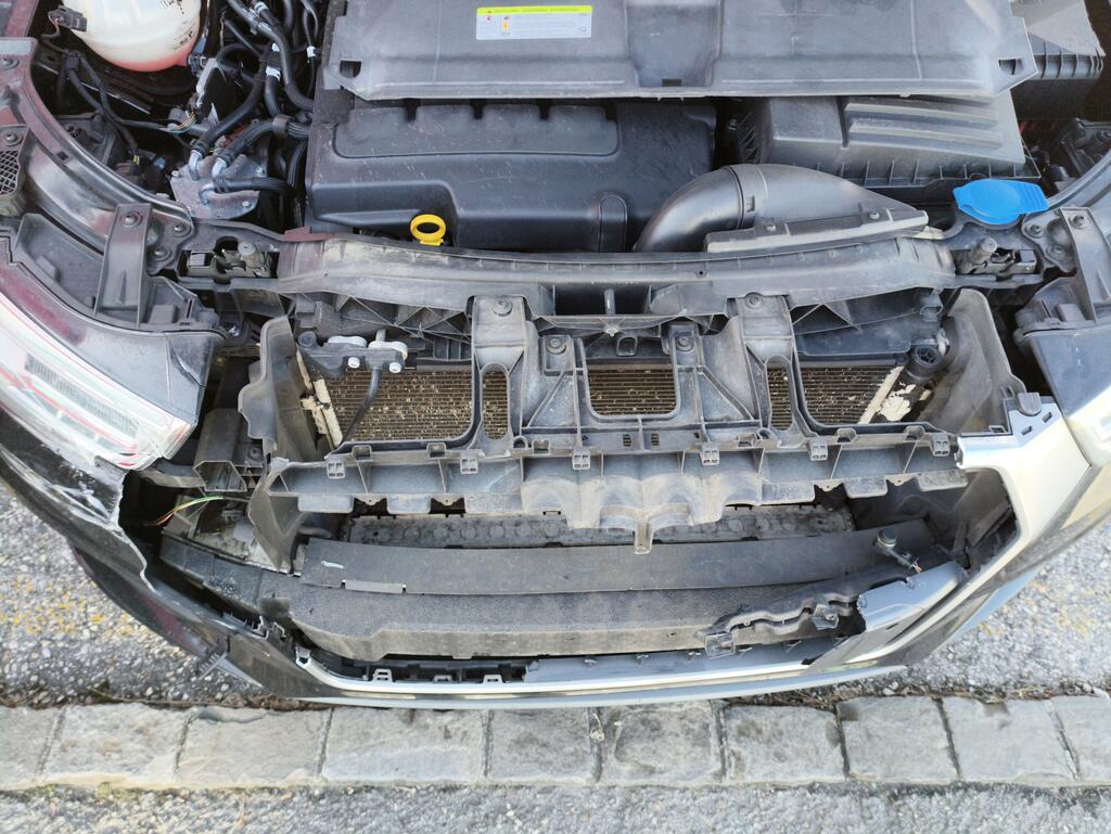 Choc avant gauche Capot moteur enfoncé et refoulé. Phare droit, pare-chocs avant, calandre et capteur PDC avant enfoncés et cassés. Le véhicule ne peut pas rouler. Côté gauche endommagé. Torche électrique brûlée, endommagée et coupée. Risques sur les phares.