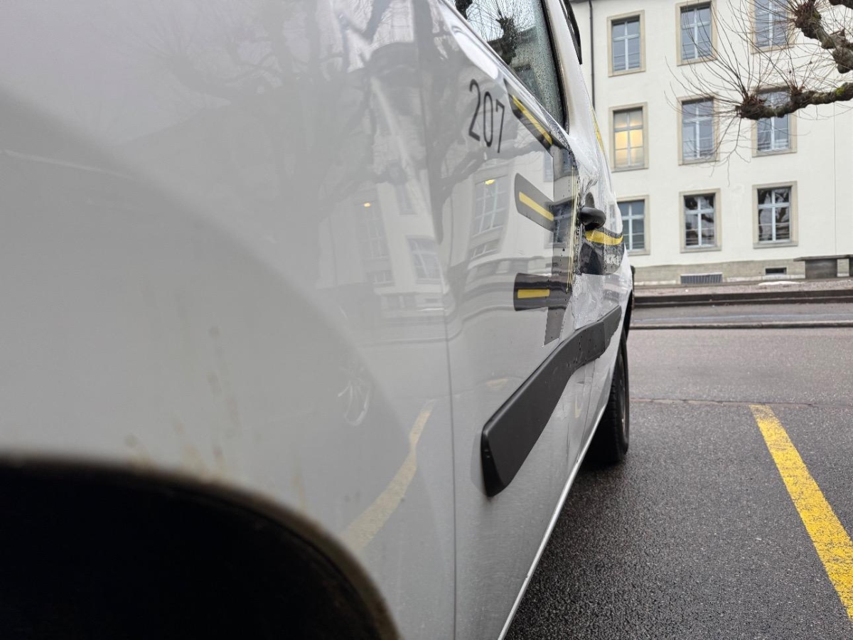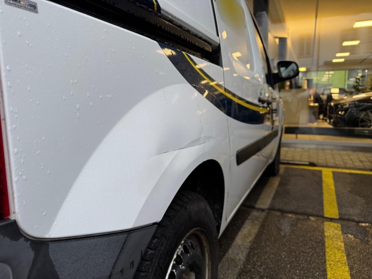 Aussenspiegel rechts, Das Fahrzeug hat rundum kleine Dellen, Beulen und Lackschäden, Diverse Gebrauchsspuren, Rücklicht rechts, Seitenwand rechts, Stossstange hinten, Türe vorne rechts