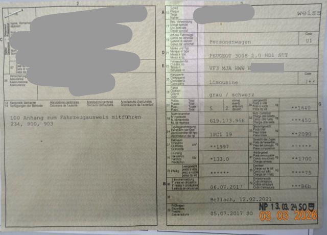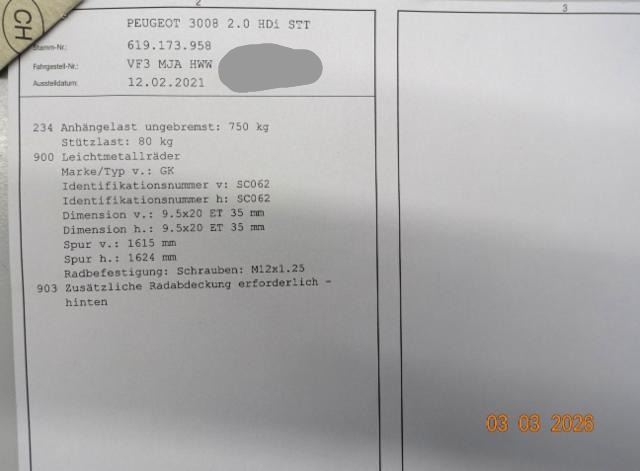 Airbag Fahrer und Beifahrerseite Sitzheizung vorne Elektrische Fensterheber vorne + hinten Aussenspiegel elektrisch verstellbar und heizbar Seitenairbag Fahrer und Beifahrerseite Zentralverriegelung mit Fernbedienung Höhenverstellbarer Beifahrersitz Mittelarmlehne vorne ABS und EBV Elektr. Bremskraftverteilung Dachreling Alu Deaktivierung Beifahrerairbag ESP/ ASR Vorhangairbags vorne + hinten DSC Dynamische Stabilitäts-Control Zwei Zonen-Klimaautomatik Leichtmetallfelgen 19" Rückfahrkamera 12 V Steckdose 3x Elektronische Servolenkung Pack Visibilité Dieselpartikelfilter Isofix-Kindersitzbefestigung hinten Spurassistent Keyless Schliess- und Startsystem Höhenverstellbarer Fahrersitz Reifendruck-Sensoren RDS Seitenscheiben im Fond und Heckscheibe abgedunkelt Heckklappe elektrisch Elektrische Parkbremse Einparkhilfe hinten Schwarzes Dach Pedalerie in Aluminium Reifenreparatur-Kit Stop + Start System Einparkhilfe vorne LED Tagfahrlicht Aussenspiegel elektrisch einklappbar Sitzbank hinten 1/3 - 2/3 umklappbar Totwinkel-Assistent Keine Gewähr auf die Angaben der Serienausstattungen Lederlenkrad perforiert Radio/ MP3/ USB/ Bluetooth/ Fernbed. am Lenkrad DAB+ Digital Audio Broadcast LED-Nebelscheinwerfer Sitzbezüge in Alcantara/ Kunstleder Verkehrsschild-Erkennungssystem Mirror Link Navigationssystem/ Peugeot Connect I-Cockpit Amplify Garantie 3 Jahre/ 80'000 km Full LED Technology