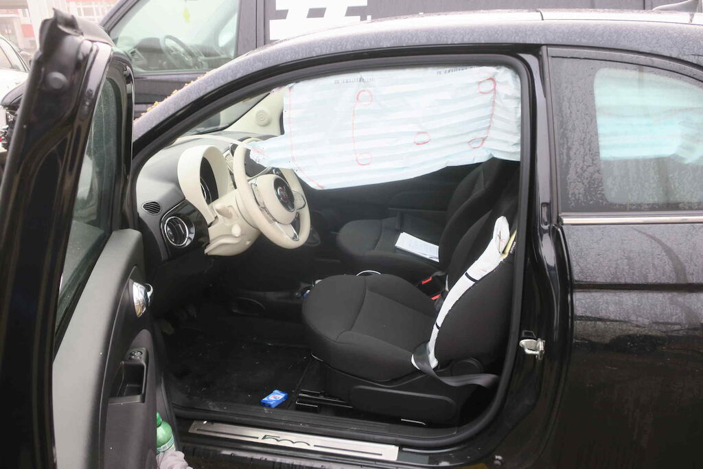 Ganze Seite links, Kopf, Seitenairbag links inkl. Gurtstraffer links sind ausgelöst. Motor Getriebe Vorderachse Hinterachse Airbags ausgelöst: 2 unbekannt ( Abfallcode 16.01.04ak )