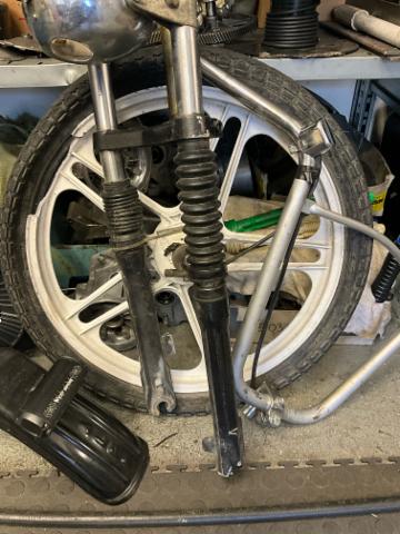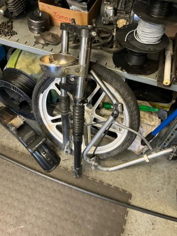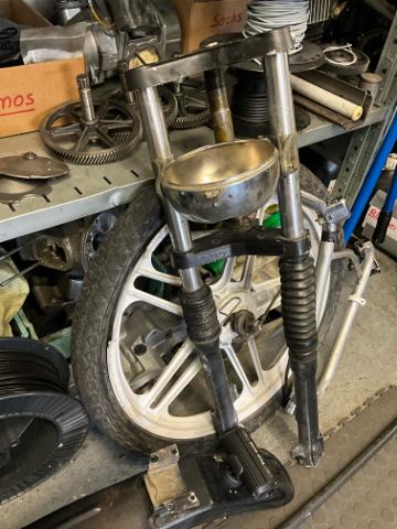Schutzblech vorne defekt. Vorderrad beschädigt. Gabel beschädigt. Lenker verbogen.