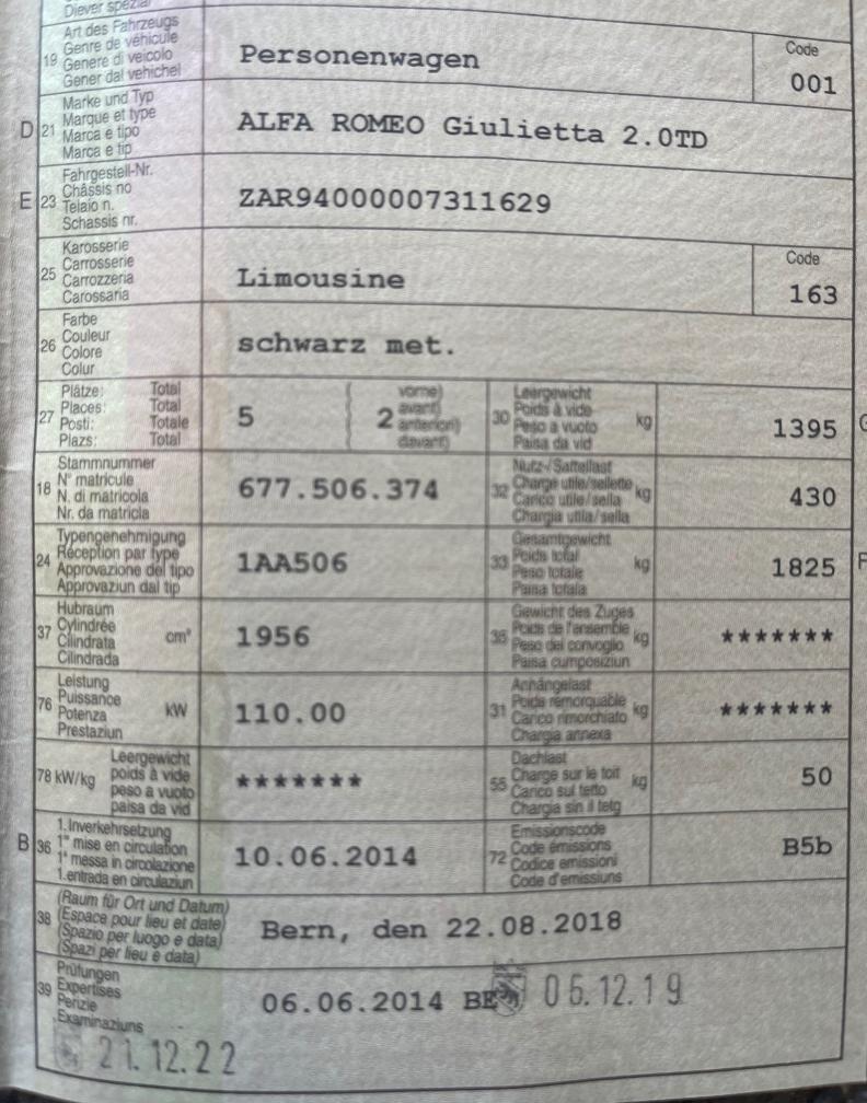 Alfa Romeo Giulietta ist nicht fahrbar, da die Diesel-Hochdruckpumpe defekt ist. Optisch weist der Wagen diverse Kratzer auf (siehe Fotos) sowie vereinzelte kleine Beulen auf dem Dach. Giulietta ist 4-fach Bereift. Siehe Fotos. Eine detaillierte technische Prüfung wurde nicht durchgeführt. Der Verkauf erfolgt ab Platz, ohne Aufbereitung. Jegliche Garantie oder Gewährleistung ist ausgeschlossen.