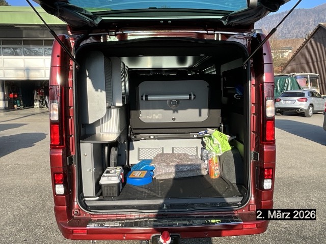 100% LED-Beleuchtung, geringer Stromverbrauch (12 Lichtpunkte), 12V-Steckdose und 9 USB-Anschlüsse, 220V-Steckdose für extene Stromversorgung, 3-Knopf-Schlüssel versenkbar, 3-Punkt-Sicherheitsgurte und Gurtstraffer, Ablage für Armaturenbrett und Türen, Ablage im Armaturenbrett, Airbag: Airbag Fahrer und Beifahrer, Anti-blockiersystem (ABS) mit Notbremsassistent und Bremskraftverteilung, Assist: Einparkhilfe hinten, Assist: Müdigkeitserkennung, Assist: Notbremsassistent, Assist: Rückfahrkamera, Assist: Tempomat mit Geschwindigkeitsbegrenzer, Aussendusche hinten am auto, Aussenspiegel rechts und links beheizt, elektrisch verstell- / und einklappbar, Autonomer Tisch für drinnen oder draussen mit passender Aufbewahrung im Kofferraum, Camper-Van mit 5 Sitzplätzen -Rücksiztbank 3 Plätze auf Schienen und 4 Schlafplätzen, Dashboard mit 4,2-Zoll-TFT-Farbmonitor, Dekor: Armaturenbrett Gris Météor, Dekor: Chrome Applikationen - Chromeinlage auf dem Schalthebel und den Umrissen der Bedienelementen der Klimaanlage, Dunkel getönte Scheiben hinten (35% Lichtdurchlässigkeit), Ebener Teppichboden vorne, Elektrische Fensterheber vorne mit Schnellsenktaste, Elektronisches Stabilitätsprogramm ESC) mit Extended Grip,Berganfahrhilfe, Anhänger Stabilisator und Antriebsschlupfregelung (ASR), Frischwassertank mit 60 Liter Volumen, Garantie: 12 Jahre Garantie gegen Korrosion (ab 1. Inv.), Garantie: 3 Jahre Lackgarantie (ab 1. Inv.), Garantie: 3 Jahre oder 100'000 km (ab 1. Inv.), Gaskocher-Herd mit zwei Flammen kombiniert mit Spüle und Wasserhahn, Getriebe: EDC automatisiertes 6-Gang- Doppelkupplungsgetriebe, Grosse Schubladen laufen leichtgängig unter der Sitzbank, Grosses Aufstelldach (Schlafdach mit Bett 120cm x 200cm) (Froli Bettrahmen), Gurtwarner für 1. Reihe und hintere Reihen, Heckklappe verglast, Heckscheiben-Wischer, Heckscheibenheizung, Klima: Manuelle Klimaanlage vorne, Klima: Öl-Heizung 2000W mit optimaler Funktionalität bis 2500m Höhe, Kofferraumabdeckung mit Hubzylinder, Kühlschrank mit 49 Liter Volumen, LED-Innenleuchten (Kabine), Lackierung: Matt-Lackierung Blanc Glacier, Lenkrad längs- und höhenverstellbar, Lenkrad: Lenkrad in Lederoptik, Licht- und Regensensor, Licht: Drittes Bremslicht, Licht: Full LED Scheinwerfer, Licht: LED-Tagfahrlicht, Licht: Nebelscheinwerfer, Licht: Nebelschlussleuchte, Markise (250 cm x 235 cm) Grand SpaceNomad, Media: Applikation R&, Media: Connected Services, Media: EASY LINK 8", Paket: Pack Look Komplett, Partikelfilter und Oxydationskatalysator, Polster: Stoff Java Noir, Polyester-Isolierung und Aluminium Verkleidung, Rollladenseitenschrank, Räder: Leichtmetallfelgen 17", Räder: Reifendruckkontrollsystem, Räder: Reifenreparatur-Kit (Tire Fit), Rückwand hinten verblecht (2 Seiten), Schiebeverdunkelungsvorhänge und Verdunkelungsvorhänge für die Kabine, Schubladen ", Seitenwand links verglast mit Schiebefenster, Servolenkung, Sitze: ", Sitze: Fahrersitz ", Sitze: Kopfstützen höhenverstellbar - Fahrer/Beifahrer vorne und alle hinteren Plätze, Sitze: Sitzbank hinten mit ISOFIX Kindersitzbefestigung, Sitze: Vordersitze drehbar, Solarpanel, Stopp-/Start-System, Stripping SpaceNomad, Teppichfussmatten vorne, Transformierbares Bett im Innenraum mit 135 cm x 185 cm für Grand SpaceNomad, Türen: Schiebetüre rechts mit Schiebefenster, Wegfahrsperre elektronisch, Zentralverriegelung der Türe mit Fernbedienung, Zusätzliche Batterie AGM 840 Wh