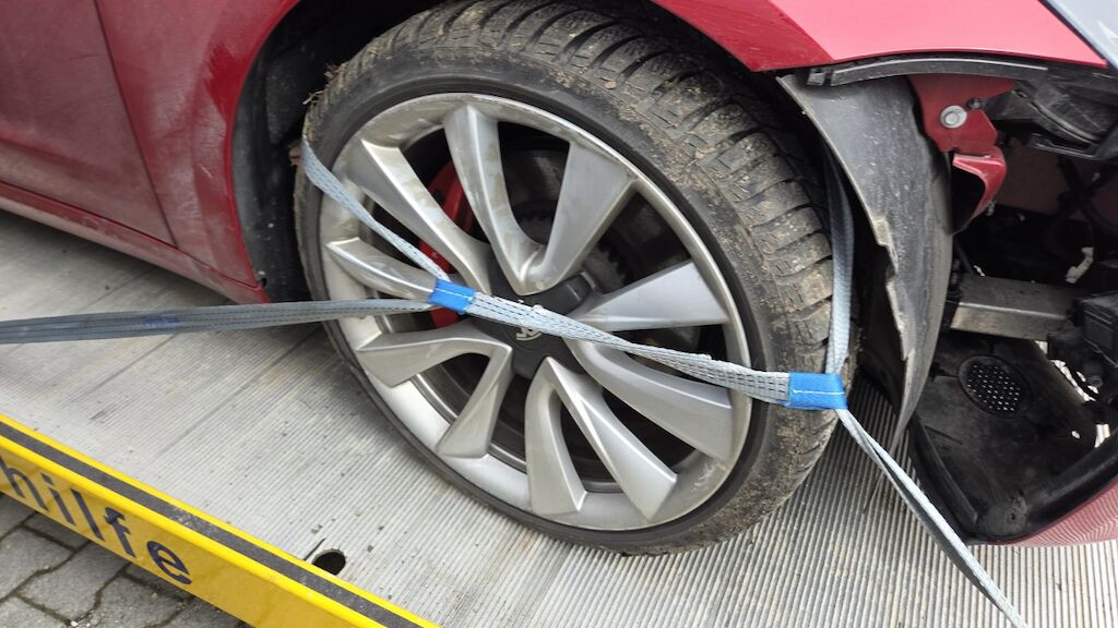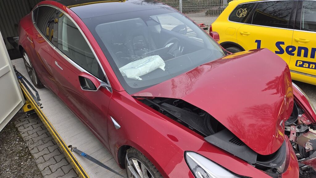 massiver Frontschaden: Front massiv deformiert, Haube Stossstange komplette Front eingedrückt, 2 Airbagshaben ausgelöst dementsprechend auch die Gurtsttaffer. Frontscheibe gebrochen, Powerfuse der Haupbatterie hat ausgelöst, dementsprechend kann keine Auskunft über den Zustand gemacht werden. Motor Getriebe Vorderachse Hinterachse Airbags ausgelöst: 2 unbekannt ( Abfallcode 16.01.04ak )