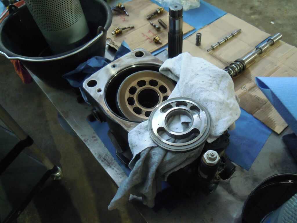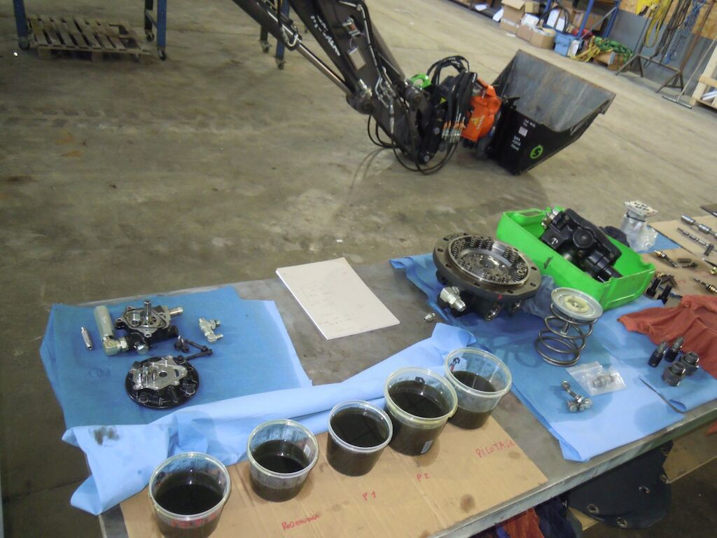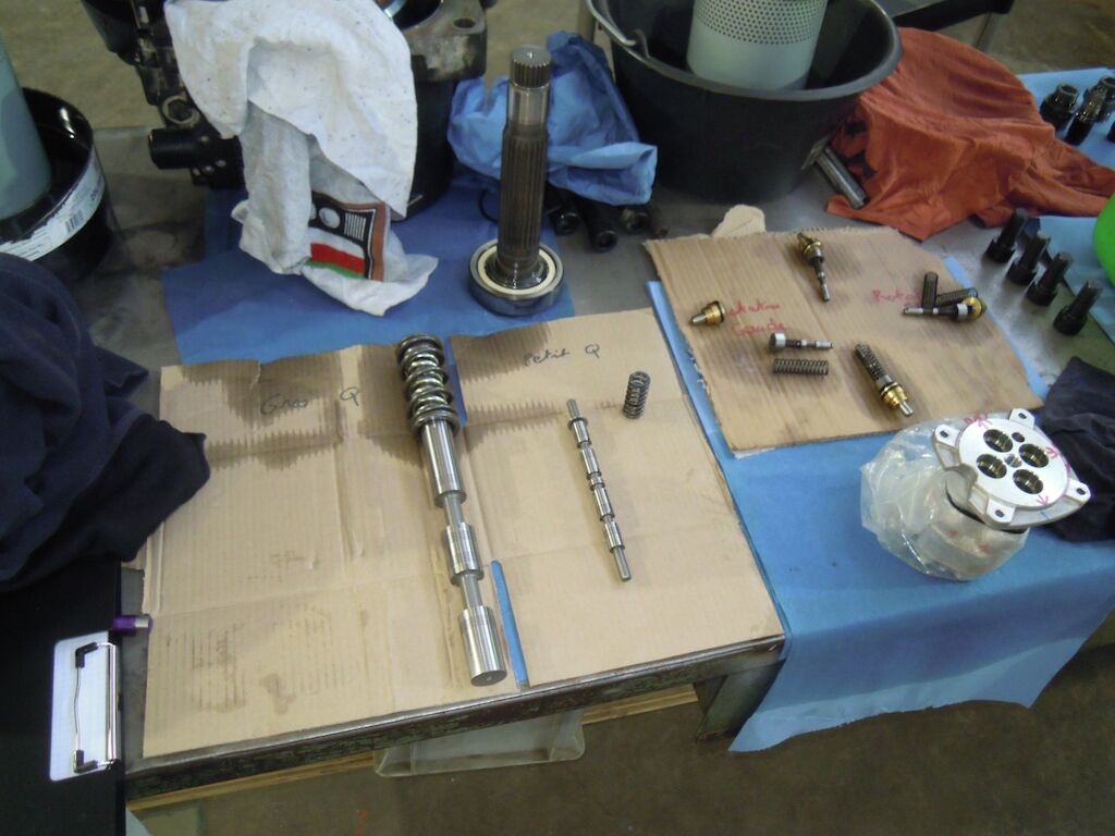 Circuit hydraulique complet pollué par de la très fine limaille, huile noircie, micro-rayures sur les éléments de pompage et sur les pièces rotatives. Motor Getriebe Vorderachse Hinterachse Airbags ausgelöst: 0 Nein ( Abfallcode 16.01.04ak )