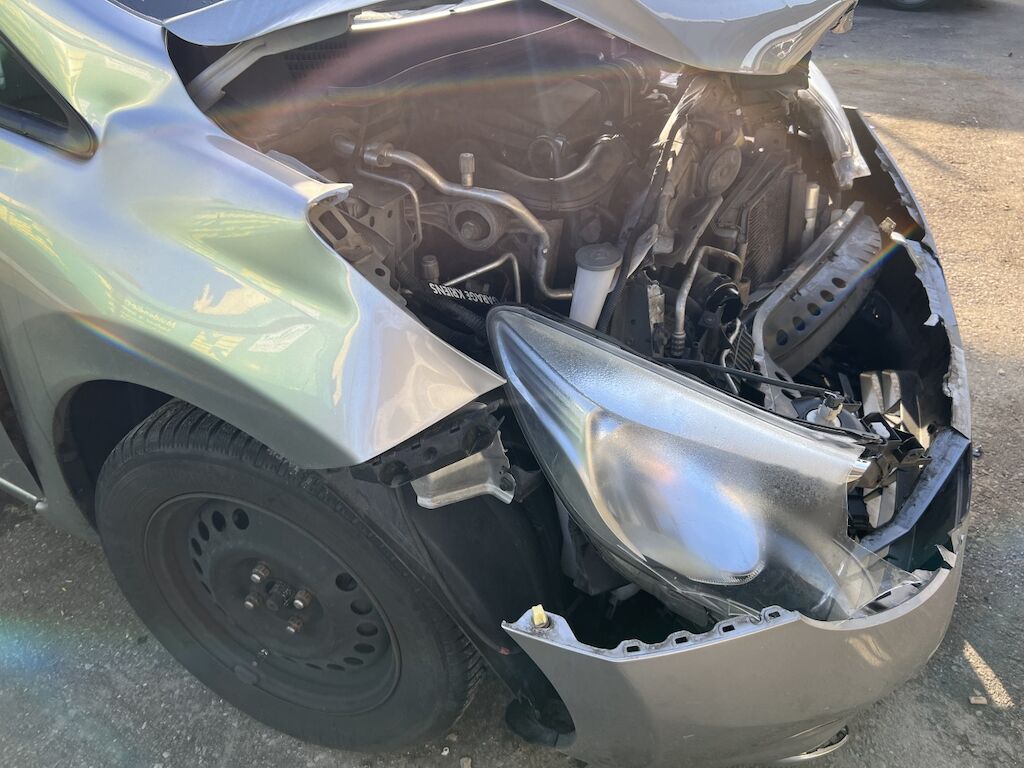 Schaden vorne und hinten: Komplette Front ist eingedrückt, siehe Bilder, Frontscheibe, Airbags, Gurtstraffer rechts, beide Kotflügel, Fahrertüre, Stossfänger hinten und der Heckdeckel sind beschädigt. Schadenaufzählung ist nicht abschliessend, da Fahrzeug unzerlegt begutachtet wurde. Motor konnte vor Ort gestartet werden, klingt aber speziell und es laufen Flüssigkeiten aus. Motor Getriebe Vorderachse Hinterachse Airbags ausgelöst: 2 unbekannt ( Abfallcode 16.01.04ak )