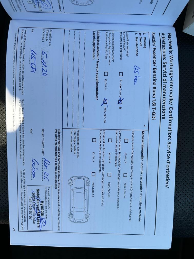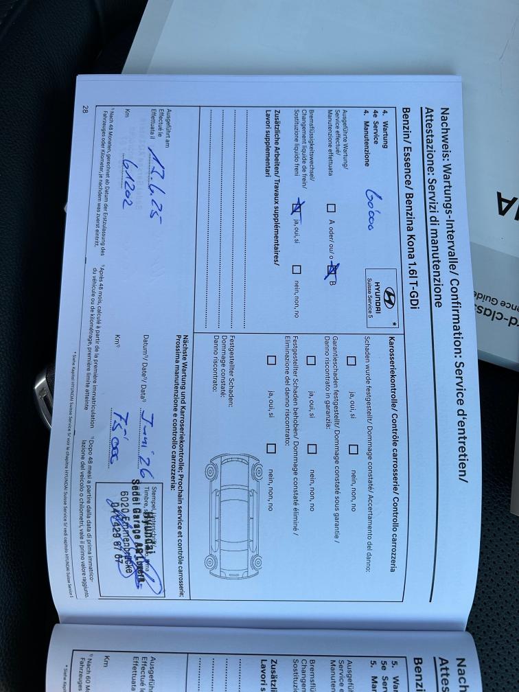 Fahrzeug hat noch Werksgarantie bis am 22.03.2028 Sommerräder 3 - 4 mm Winterräder 6 - 7 mm Letzter Service wurde am 13.06.2025 mit 61'202 km durchgeführt.