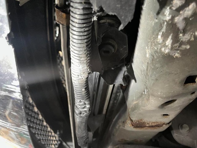 Aufhängungsteile vorne links beschädigt. Risiko Vorderachse.