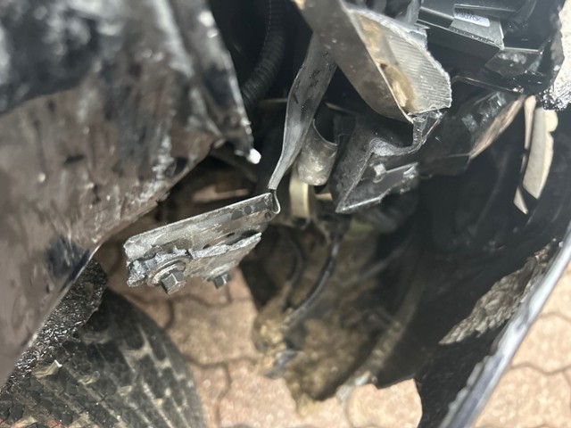 Vorderachse ist beschädigt. Aufhängungsteile vorne rechts beschädigt. Risiko Lenkung.