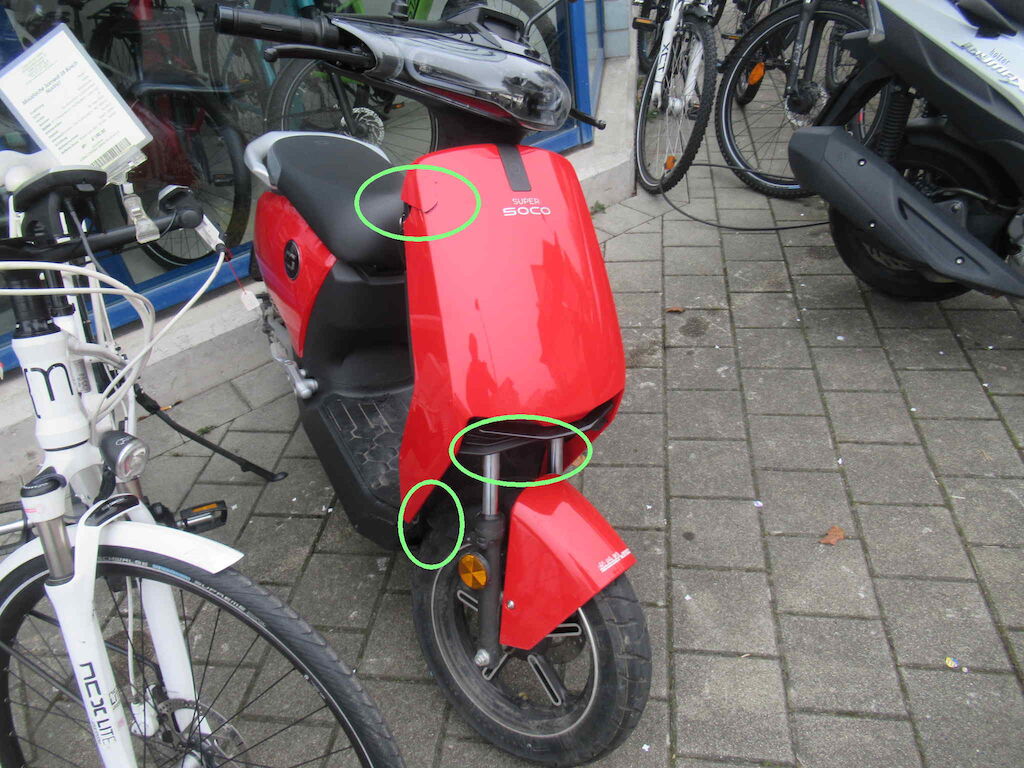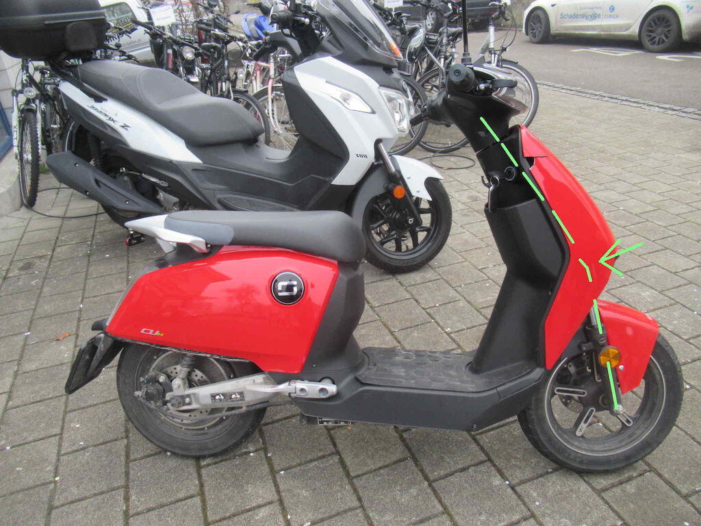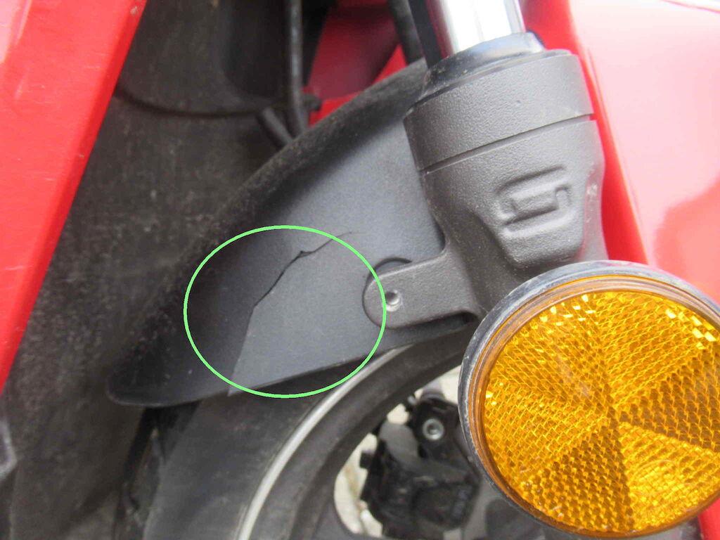 Beschädigung Gabel samt Lenkstange verbogen, Schutzblech, Radkasten innen Motor Getriebe Vorderachse Hinterachse Airbags ausgelöst: 0 unbekannt ( Abfallcode 16.01.04ak )