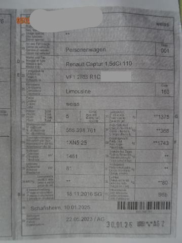 Airbag Fahrer und Beifahrerseite Elektrische Fensterheber vorne Aussenspiegel elektrisch verstellbar und heizbar Lederlenkrad Elektrische Fensterheber hinten ABS und EBV Elektr. Bremskraftverteilung Reifendruck-Kontrollsystem RDK Deaktivierung Beifahrerairbag Pack Colour Isofix-Kindersitzbefestigung Not-Bremsassistent mit Aktivierung der Warnblinkanlage Seitenairbags vorne ESP/ ASR/ CSV Tempomat mit Geschwindigkeitsbegrenzer Dunkle Verglasung hinten Dieselpartikelfilter Elektrische variable Servolenkung Keyless-Drive Hands-free Höhenverstellbarer Fahrersitz HSA Berganfahrassistent Rücksitzlehne geteilt 1/3 oder 2/3 / umklappbar Klimaanlage automatisch inkl. Pollenfilter Licht- und Regensensor Nebelscheinwerfer mit Corner Funktion Einparkhilfe hinten Reifenreparatur-Kit Stop + Start System LED Tagfahrlicht Leichtmetallfelgen 17" schwarz Dach in Kontrastfarbe Keine Gewähr auf die Angaben der Serienausstattungen Renault Media-Nav DAB+ Digital Audio Broadcast Sitzhüllen abnehmbar