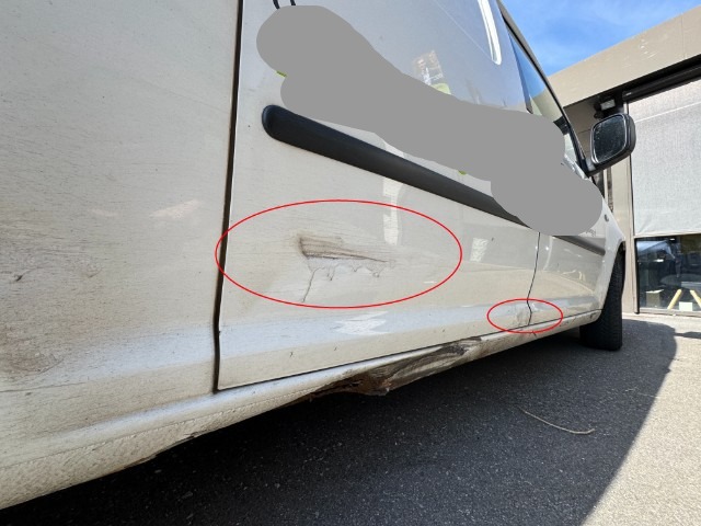 Rechte Seite beschädigt. Anstoss rechts im Bereich der B-Säule. Anstoss rechts im Bereich der C-Säule.